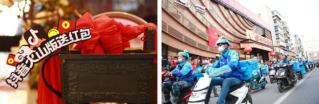 錦州御燒烤是線下主題限定店之一,啟幕式在錦州御燒烤召開。當天150名外賣騎手到現(xiàn)場造勢。